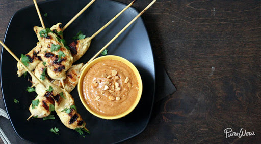 4. To serve, place the chicken skewers on a plate with a portion of the peanut sauce. Garnish with chopped fresh cilantro or sliced scallions, if desired.