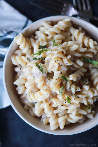 Serving size: 1½ cups Calories: 324 Fat: 13 g Carbohydrates: 39 g Sugar: 3 g Sodium: 365 mg Fiber: 4 g Protein: 14 g Cholesterol: 8 mg