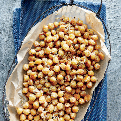 1. Drain and rinse chickpeas; pat dry with a paper towel. Heat oil in a large nonstick skillet over medium-high heat. Add chickpeas to pan; cook 17 minutes or until golden brown and crispy all over, stirring occasionally.
