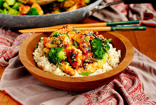 Immediately pour sauce over chicken and serve with white or brown rice and choice of vegetables.