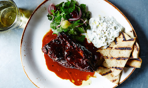 • Cucumber-Dill Tzatziki (click for recipe) and Three-Herb and Red Onion Salad (for serving; click for recipe)