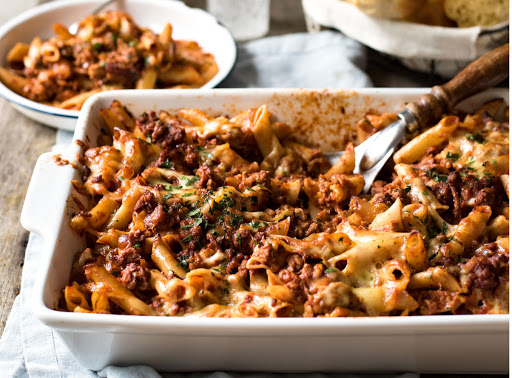 Pour the sausage mixture over the ziti. Top with cheese. Cover loosely with foil and bake for 20 minutes, then remove the foil and bake for a further 5 to 10 minutes until the cheese is bubbly and golden. Stand for 5 minutes before serving.