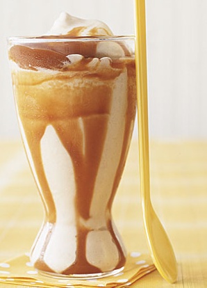 Process all in blender in smooth. Top with additional caramel sauce.