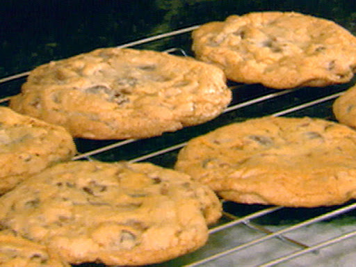 In a small bowl, combine flour, baking soda and salt; gradually add to butter mixture, beating until blended. Stir in chocolate morsels and almond brickle chips. Drop cookies by 1/4 cupfuls about 3-inches apart onto prepared baking sheets. Bake for 11 to 12 minutes, or until lightly browned. Let cool for 2 minutes on baking sheets. Remove to wire racks to cool.
