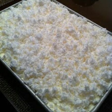 Bake cake in 9x13 pan per pkg directions. When done, poke several holes in cake. In a bowl, mix coconut milk and sweetened condensed milk and spoon over cake. let set until liquid soaks into cake. Mix frozen coconut and Cool Whip and frost cake. Sprinkle remaining coconut on top. Refrigerate.