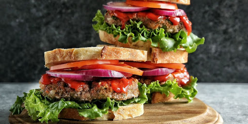 Assemble sandwiches by layering lettuce, tomato, red onion, and meatloaf between 2 pieces of bread. Serve with remaining 1/2 cup Sriracha ketchup.