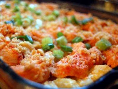 6. Stir together crumbs and butter. Sprinkle on top of chicken strips.