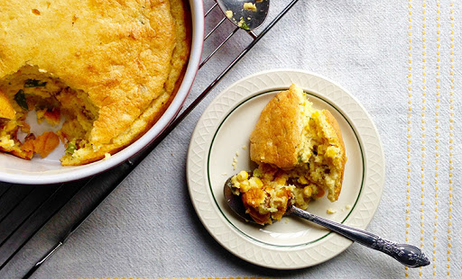 Note: the spoonbread may fall after sitting a few minutes, but it will still be delicious (and is great served cold)!