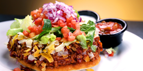 4.once finished scoop meat onto fry bread and top with desired taco toppings(lettuce, tomatoes, green onions, cheese, sour cream etc).