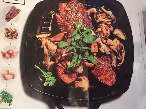 Add steak; sear 5 - 7 minutes per side. Serve with mushrooms and garnish with watercress.