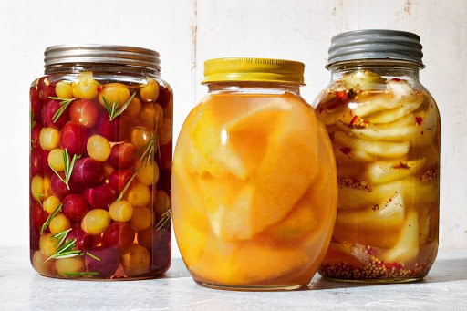 Place melon wedges in an airtight container or Ziploc bag. Pour pickling liquid over fruit, filling container, or pressing as much air as possible out of bag. Refrigerate 24 hours before proceeding with Saint 75 cocktail recipe at left, adding to a salad or pairing with prosciutto.