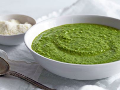 Notes: Air is the enemy of pesto. For freezing, pack it in containers with a film of oil or plastic wrap directly on top with the air pressed out.