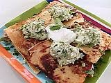 Lastly, melt butter until very hot in a saute pan over medium-high heat. Add quesadillas and cook for about 2 minutes on each side until toasty and the cheese is melted. Cut quesadillas into 3 pieces each and serve. Garnish with cilantro and scallions, and serve with salsa picante, guacamole, and sour cream, if desired.
