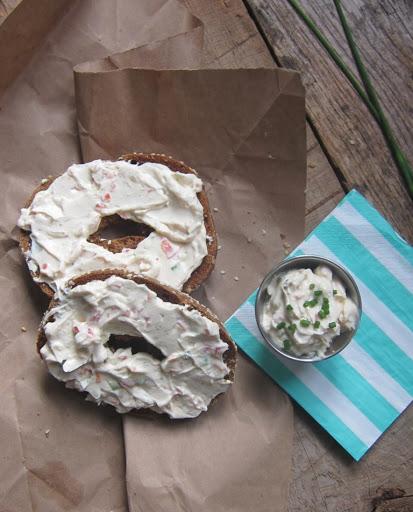 For herb & garlic cream cheese, omit the vegetables and add in ½ teaspoon each of dried oregano, thyme and basil, and an additional ¼ tsp dried garlic granules.