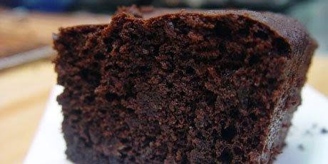 3. In a separate bowl, mash together the eggs and bananas. Add the flour, sugar, cocoa and baking powder and stir to combine. Pour in the melted chocolate mixture and stir.