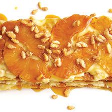 Remove apple pie carefully from the pan, placing it upside down on a cake stand or serving platter. Ladle the warm caramel-nut mixture over the pie till completely coated.