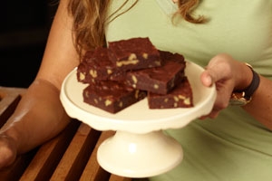 Bake about 30 minutes or until a cake tester inserted into the brownies comes out clean. Cool in pan at least 10 minutes; remove from pan and cut into 2-inch squares.
