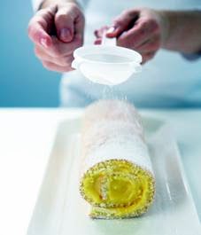 4 Bake in centre of 375°F (190°C) oven until top springs back when lightly touched, 12 to 15 minutes. Set aside 2 tsp (10 mL) of the icing sugar; dust clean tea towel with remaining sugar. Using knife, loosen edges of cake; invert onto towel. Remove pan; peel off paper. Trim long edges. Starting at 1 short edge, immediately roll up with towel. Let cool on rack. (Make-ahead: Place rolled cake in airtight container and store at room temperature for up to 1 day. Or unroll cake and reroll between sheets of waxed paper; overwrap in heavy-duty foil and freeze for up to 2 weeks.)