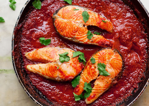 Put the fish pieces carefully in the pot. It's okay if the pieces end up one on top of another. Place the chickpeas on top of the fish.