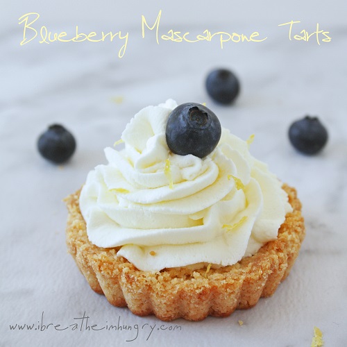 If serving within an hour, spread the blueberry sauce onto the tart crust. Spread or pipe mascarpone mixture onto the tart. Garnish with fresh blueberries and lemon zest.