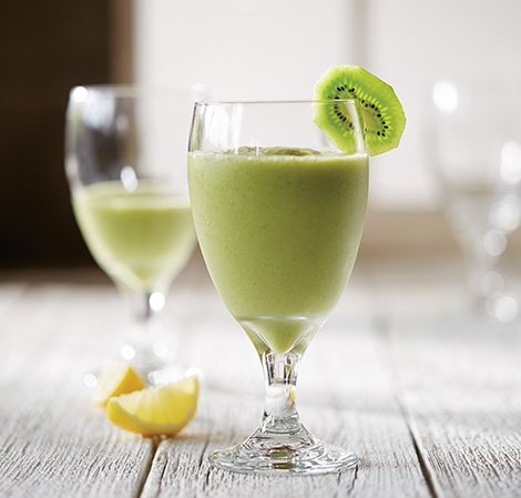 Fresh fruit blends harmoniously with chopped cucumber and broccoli in this vibrant breakfast smoothie.
