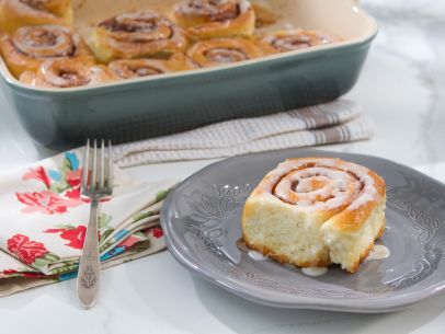 For the filling: On a lightly floured surface, roll the dough into a large rectangle about 1/4 inch thick and slightly bigger than the baking dish. Spread the butter over the dough, leaving a 1/4-inch border on all sides. Sprinkle the dough with the brown sugar, then the cinnamon. Starting with one longer edge, roll the dough into a cylinder and pinch the ends together to seal completely. Cut into 12 rolls and place in the prepared baking dish. Cover the dish with plastic wrap and allow the rolls to rise until they double in size, about 30 minutes at room temperature.