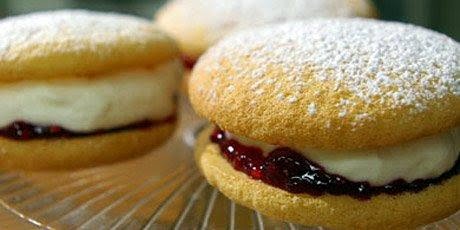 10. Sandwich the rounds together with raspberry jam and sweetened, vanilla-flavoured whipped cream. Let sit an hour or so to soften before serving. (This is important. They will not be sponge-like right away, and you want them to be.) They need no dressing up, in my opinion, but you can dust with icing sugar before serving if you like.