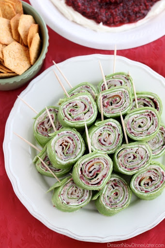 Roll it up the tortilla as tight as you can starting on the end with the meat and salsa. Then using a serrated knife, cut 2-inch pieces and poke a toothpick into the end of the tortilla to keep it from unraveling.
