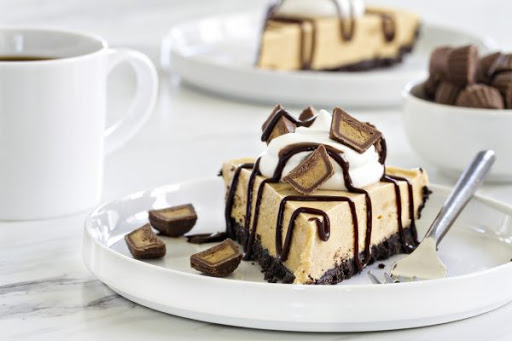 Just before serving top with whipped cream, mini peanut butter cups and chocolate sauce.