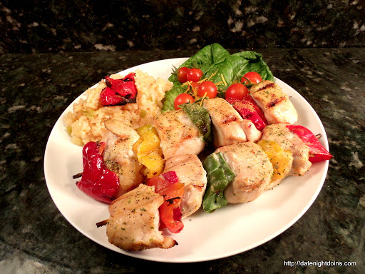 On skewers alternate chicken chunks with veggies. Sprinkle rub, to taste, with Louisiana Lemon Pepper Seasoning.