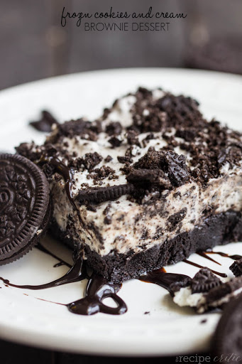 A delicious frozen brownie cookies and cream oreo dessert that everyone will love!