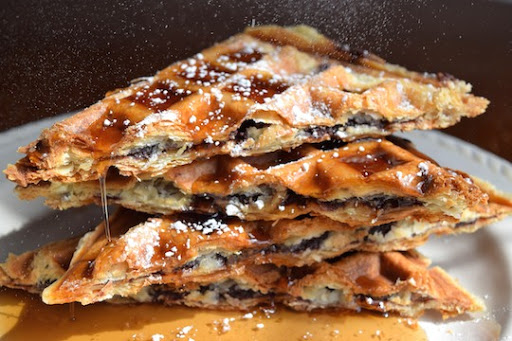 Place filled puff pastry on waffle maker and cook until golden brown and puffed, about 6 minutes each, depending on waffle maker. Do the same with second filled puff pastry.