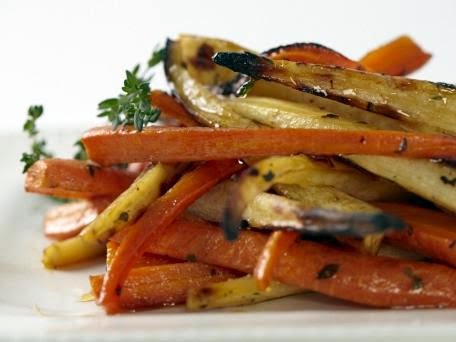 Cut carrots and parsnips in half widthwise, then cut pieces, lengthwise, into slim sticks (quarters or sixths, depending on size).