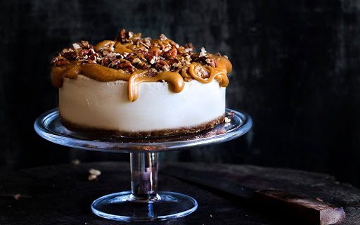 Cheesecake, Lemon With Caramel Pecan Topping [Vegan, Gluten-Free]