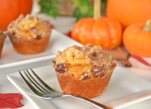 STREUSEL TOPPING: Mix flour, sugar, cinnamon and pecans.