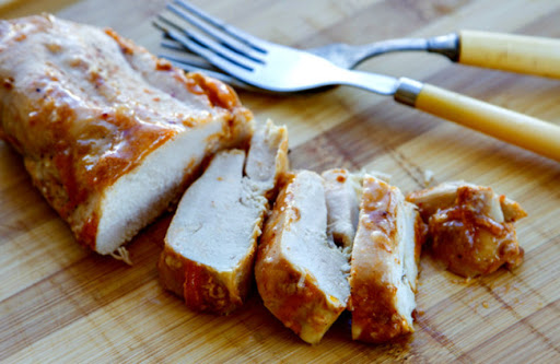 Season chicken with salt and pepper. .Place breasts in a prepared baking dish and cover with the garlic and brown sugar mixture.