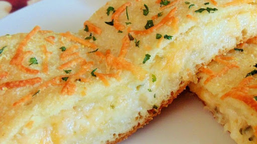 Bake in the preheated oven until bread is golden brown and cheese is bubbly about 25 minutes. Cool 5 minutes before pulling strips apart.
