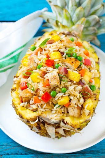 Add the onion and carrot to the pan, cook 3-5 minutes or until softened. Stir in the red bell pepper, pineapple and bacon; cool 2-3 minutes more.