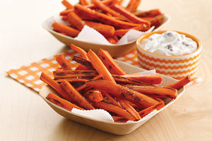 Flip spears. Bake until tender on the inside and slightly crispy on the outside, about 15 more minutes. (The thicker the fries, the longer the cook time.)