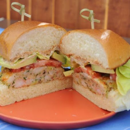 For the shrimp burgers: Coarsely chop half of the shrimp. Put the remaining shrimp in a food processor and pulse until smooth. Combine both shrimp in a large bowl with the breadcrumbs, lemon juice, salt, garlic powder, pepper, scallions and egg and mix. Refrigerate for 10 minutes, and then form into 4 patties. Refrigerate 10 more minutes.