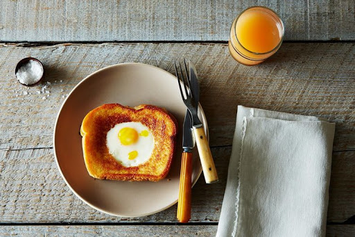 4. Flip the sandwich over. Using a cookie cutter or a drinking glass, cut out a hole in the middle of the sandwich about 2 1/2- to 2 3/4-inches wide. Remove the circle of bread (you can continue grilling this on the side of the pan) and crack the egg into the hole. Cover and cook until the egg is set to your liking.