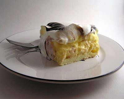 The crust is the same which I bake for 20-25 minutes at 400 I use 2 (3.4 oz.) pkgs. instant vanila pudding, 3 cups milk, 1 8 oz. pkg. cream cheese. Whipped cream and syrup is the same, but I do add the sliced almonds on top.