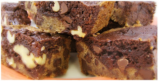 Bring butter and cookie dough to room temperature (about an hour). Preheat the oven to 350°F. Combine butter and eggs and whisk/mix. Slowly add in the brownie mix. Once the mixture is uniform, add in the cherries and walnuts; set aside. Lightly grease a brownie pan and place the chunks of cookie dough sporadically around the bottom of the pan (there may be a few pieces of cookie dough left, do with them what you must). Pour the brownie mix over the top, evenly coating the cookie dough. You may need to use the back of a spoon to help spread the mixture. Bake for 30-35 minutes or until you can stick a toothpick in the center and it comes out clean.