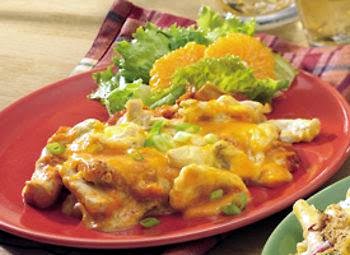 3. Heat oven to 375°F. Bake covered 30 minutes. Uncover baking dish; bake an additional 20 to 25 minutes or until sauce is bubbly and cheese begins to brown. Let stand 15 minutes before serving. Sprinkle with onions.