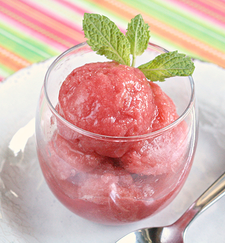 Remove the sorbet from the freezer about 10 minutes before serving. Scoop the sorbet into individual serving dishes and serve.