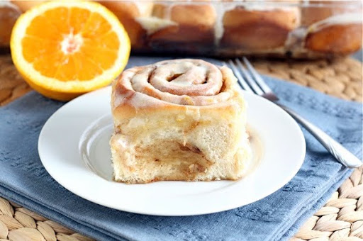 6. Gently roll up dough into one long roll. Cut rolls, using a piece of dental floss or thread, about two inches thick. Rub the zest of one orange and half cup of sugar together in a small bowl. Dip and twist the rolls into the orange sugar mixture. Place rolls in greased 9X13 baking pans.Now follow the exact same steps with the other half of the dough.