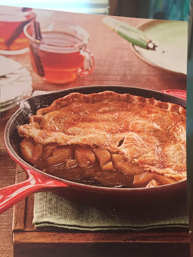 Preheat oven to 400°. Melt butter in a 10 inch cast iron skillet over medium heat. Add apples and brown sugar and sauce until apples begin to soften, about 5 minutes; reduce heat to low. Stir in zest, cinnamon and salt. Whisk together cider, lemon juice and cornstarch. Stir into apples and cook until thick and glossy, 3-5 minutes. Off heat, spread filling into an even layer in skillet and cool, at least 10 minutes. Unroll pie crust over apple mixture and crimp edges around skillet. Brush dough with egg, sprinkle with sanding sugar and cut 4-5 vents in the center. Bake pie until crust is golden brown and filling is bubbly, 35 minutes, rotating halfway through. Let pie cool to room temperature before serving.