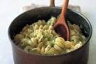 Drain pasta and reserve 1/4 cup of cooking water. Return to the pan with the zucchini mixture and reserved cooking water.