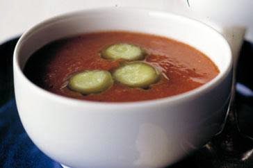 Gradually add remaining oil, tomato, capsicum, rockmelon, cucumber, basil, tomato juice and spring onion. (If your blender is small, you may need to blend in batches - pour each blended batch in a bowl and stir well at the end.)