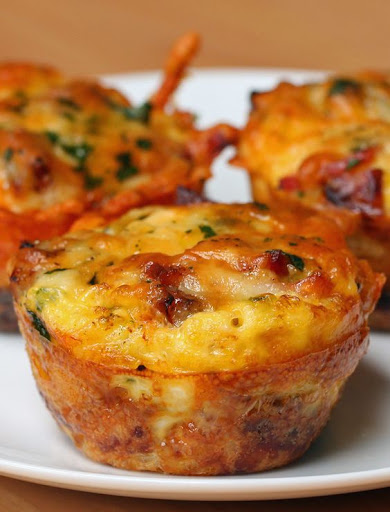 2. Place a defrosted hashbrown in each case of a muffin tin, and smush them down to form a base.